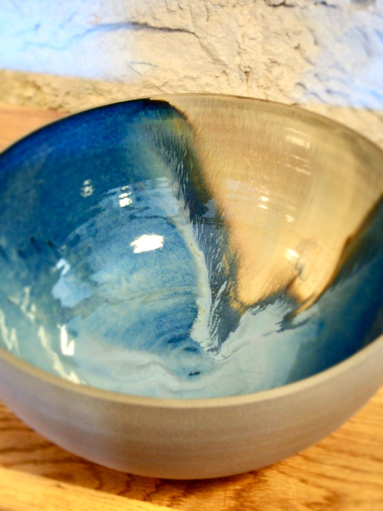 in Anthrazit-Ton mit weiß-bläulicher Glasur